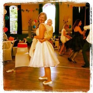 This is on my wedding day this July with my just turned one year old, Sadie, on my back. She spent most of the evening happily watching or snoozing whilst being kept close and enabling me to keep dancing and mingling! • Becky Kerr